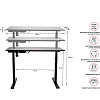 Столешница изготовлена из высококачественного материала (древесно-стружечной плиты с ламинатом), что обеспечивает его прочность. Мощная рама размером 106х65 см и профиль толщиной 1,7 см позволят спокойно разместить на столе необходимые устройства, предельная нагрузка составляет 80 кг. Устойчивые ножки обезопасят любого пользователя от падения стола. Плавный и практически бесшумный мотор, он поможет отрегулировать столешницу по высоте от 72 см до 120 см от пола.