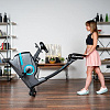 Интеграционные технологии Bluetooth позволяют работать с мобильными фитнес приложениями, такими как Kinomap™ и Zwift™, обогащая тренировку виртуальными возможностями. Подставка под планшет, транспортировочные ролики, компенсаторы неровностей пола и энергосбережение делают использование велотренажера максимально удобным и эффективным.