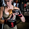 Увеличенный слой пены на ударной части и над большим пальцем, обеспечит хорошую защиту вашим рукам. Фиксируются перчатки на запястье при помощи широкой манжеты на липучке. Конструкция с открытой ладонной поверхностью позволяет быстро производить захваты при тренировки.