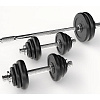 Вес дисков и количество: 4 диска по 5 кг (20 кг), 4 диска по 2.5 кг (10 кг), 6 дисков по 1.25 кг (7,5 кг), 6 дисков по 0.5 кг (3 кг).