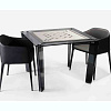 Из-за минималистичного дизайна со стороны кажется, что стол висит в воздухе. Продуманная простота форм дополняется высочайшим каче- ством материалов. Изделие постав- ляется в двух вариантах: для маджон- га и нард. В комплект каждого входит специально разработанный Impatia набор для соответствующей игры.