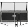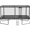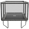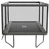 Модель представляет собой батут прямоугольной формы среднего размера, на нем достаточно места большинству пользователей для выполнения сложных трюков и интенсивных упражнений.