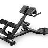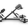 Тренажер для спины оснащена дополнительными адаптерами на которые можно добавлять нагрузку в виде дисков для повышения уровня сложности упражнений. Обрезиненная платформа для ног обеспечивает стабильность и комфорт на протяжении всего упражнения. Высота подушек для упора регулируется под любой рост. Упоры для ног выполнены из металла.