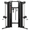 Тренажер оснащен передвижными механизмами для смены высоты блока на штеке и площадкой для хранения рукоятей, канатов и других аксессуаров.