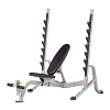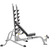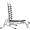 Угол наклона скамьи регулируется – от -10 до 75 градусов, т.е. можно выполнять упражнения со штангой на разные группы мышц – начиная от горизонтального классического жима от груди и заканчивая жимом от плеч
