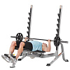 Дополнительно можно расширить функционал и приобрести опции: парту для бицепса, сгибание/разгибание ног и страховочные опоры для грифа