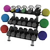 Верхний ряд стойки предназначен для гирь или гантелей. На стойке можно разместить до 10 пар гантелей.