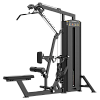 Конструкция опирается на прочную раму из стального профиля сечением 50×100 мм и толщиной стенки 3 мм. Рама покрыта высококачественным электростатическим порошковым покрытием с дополнительной обработкой деталей для повышения износостойкости, что обеспечивает устойчивость к сколам и царапинам. Рабочая масса стека составляет 100 кг и состоит из 20 весовых плит, закрытых металлическим защитным кожухом. Все тяговые элементы выполнены с использованием 5 мм стального троса в виниловой оплетке, а посадочные поверхности оснащены формованными подушками; рукоятки имеют прочное гладкое покрытие TPV с алюминиевыми наконечниками. Габариты тренажера в рабочем состоянии — 231 × 120,4 × 219,4 см, его собственный вес — 140 кг. Модель сертифицирована по международным стандартам (CE+GS).