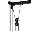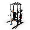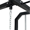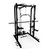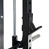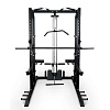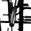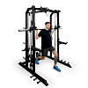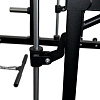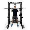 В станции есть тяга верхнего и нижнего блоков. Также машина Смита. Включенный гриф двигается по направляющим с целью безопасной тренировки. В станции предусмотрены упоры для ног, если упражнения выполняются на скамье.