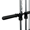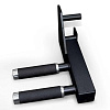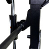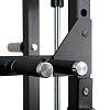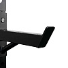 Всё навесное оборудование: изогнутый гриф и малая прямая рукоять идут в комплекте. Для выполнения упражнений со штангой предусмотрены стойки с двумя страховочными крюками, которые регулируются по высоте в 22 положениях.