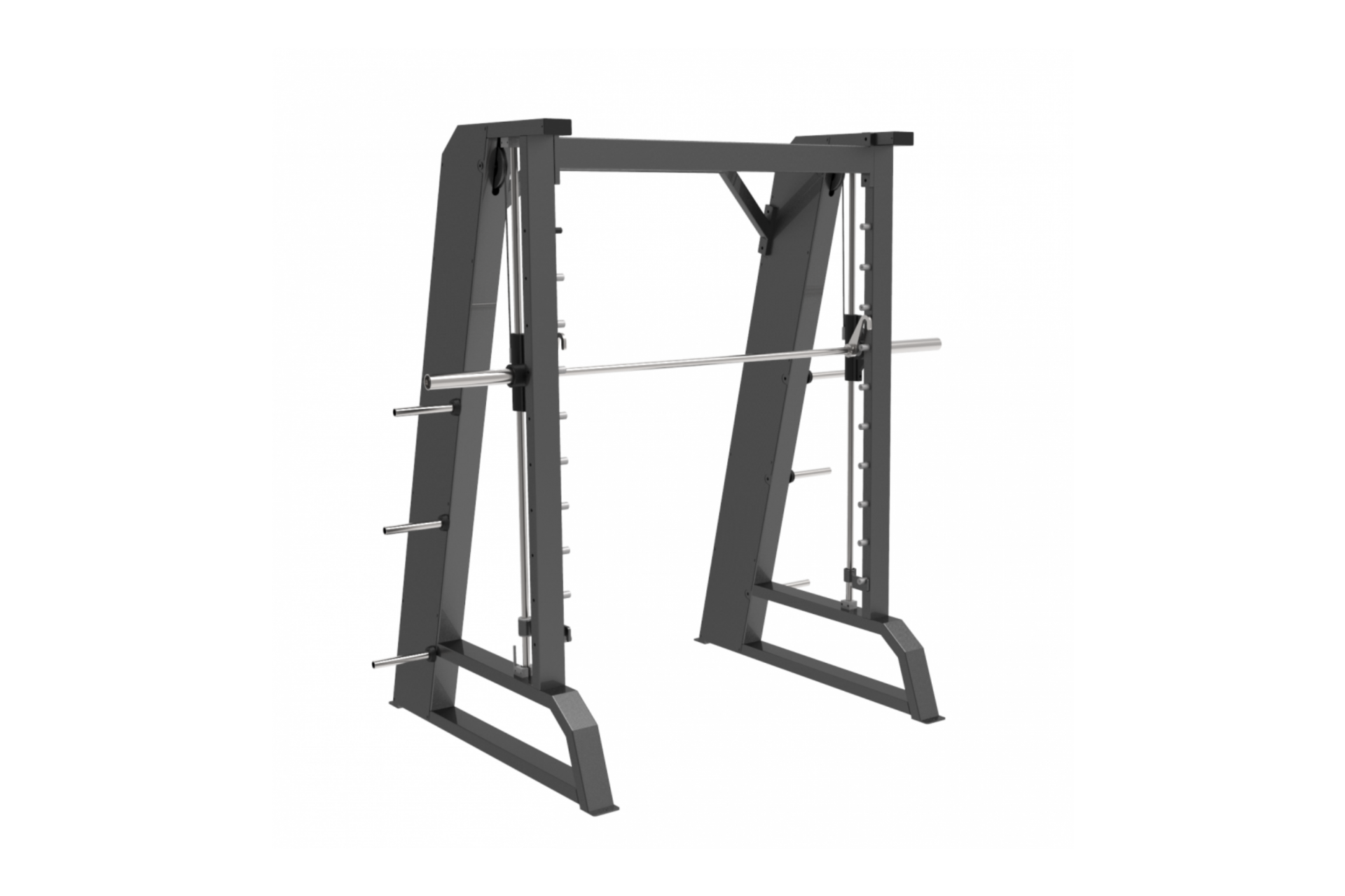 Каркас машины Смита выполнен из стальной прямоугольной трубы размером 50×100 мм. В собранном виде устройство имеет габариты 1239×2224×2295 мм (Д×Ш×В), а масса тренажера составляет 290 кг. Объём в упаковке — 1,51 м³.
