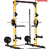- Работа со свободными весами: Тренажер оборудован двумя парами съемных страховочных захватов для выполнения упражнений с независимым олимпийским грифом (жим лежа, приседания).