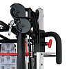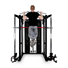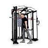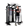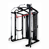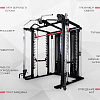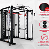 Станция включает гравитрон, кроссовер глют-машину, тяги верхнего и нижнего блоков, раму со свободными весами, отведение ног, тренажер Смита.