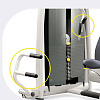 Специальная ножная педаль помогает с начальным усилием при тренировке с большими весами. Дополнительные рукояти дают возможность изменить хват и проработать
