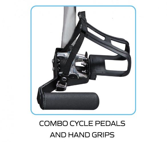 - Запатентованные рукоятки удобны для вращения механизма руками и, одновременно, являются удобными педалями для вращения с помощью ног.